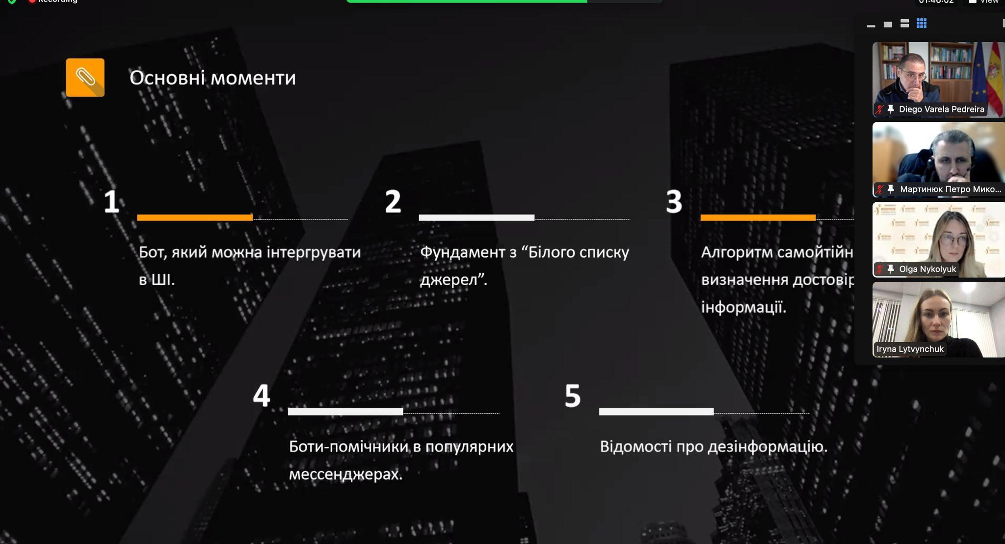 The purpose of the project is contributing to social stability of the state under the conditions of war through the cybersecurity literacy building of youth. Project activities included training and educational events on technological solutions to counter disinformation campaigns. The target audience of the project are students specializing in cybersecurity and information technologies from all over Ukraine, aged 18-25, and preference will be given to representatives of the regions of the most active hostilities. The idea of the project appeared as a response to Russian information attacks and disinformation campaigns in Ukraine aimed at spreading false information about the situation on the front line, the actions of the UА Armed Forces, territorial defense units, etc.; inciting social conflicts and shaking the mental state of the people; destabilization of the socio-economic system in the state. Expected project outcomes are (1) the formation of a critical mass of active local youth who will be able to manage ciberattacks ; (2) developing ideas and methods for disseminating tools and technological solutions to counter disinformation campaigns among ukrainian residents; (3) awareness-raising of cibersecurity tools among civic society. Priority themes of the Eastern partnership civil society facility that this fellowship project addresses include (1) mitigating misinformation campaigns about the crisis and about refugees; (2) support to IDPs and refugees to access any relevant information including through civic tech solutions, etc; and (3) advocacy campaigns and actions related to conflict resolution/peace building/etc.